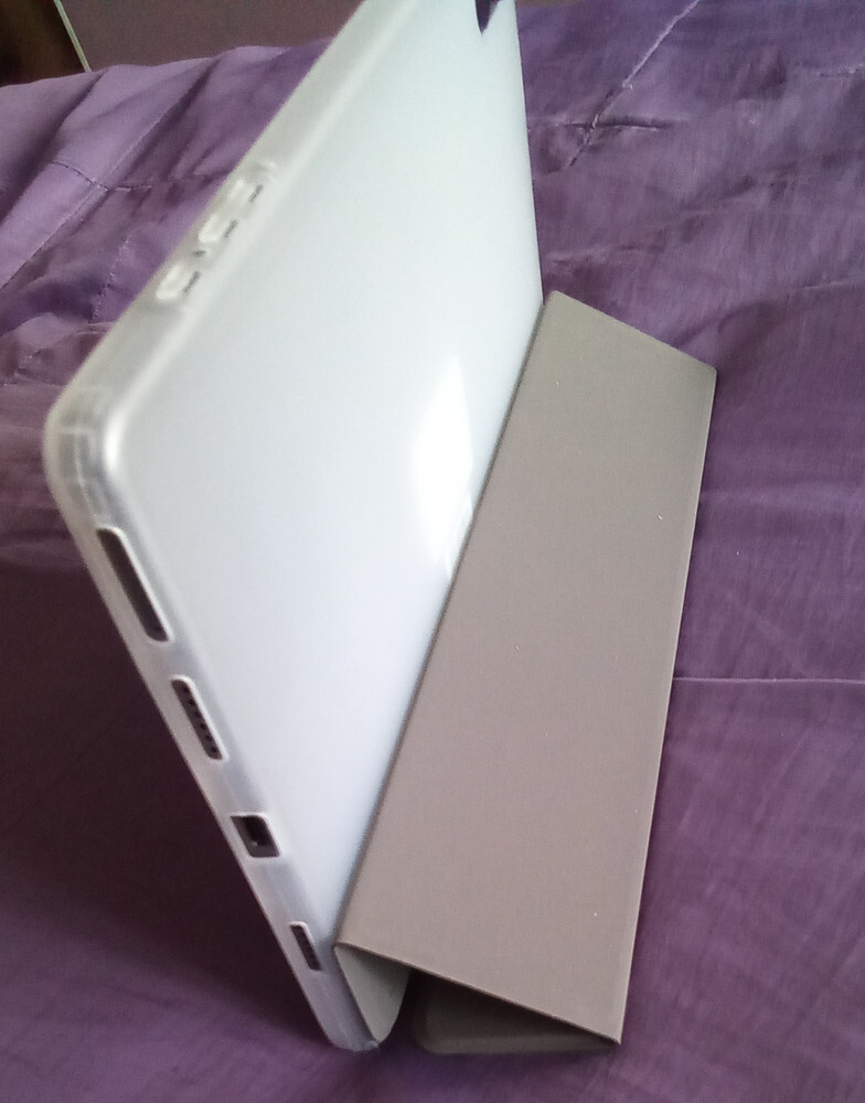 Чехол-Книжка полностью закрывает планшет, защищая его, и практически не имеет веса для большей портативности.