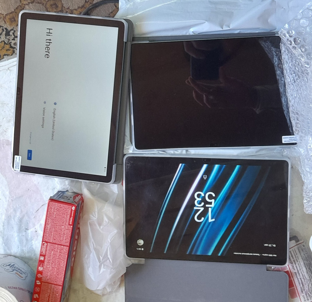 Взяли не глядя, т.к.в пункте вскрыть не дали, сказали ,что если открыл, значит купил, это минус, заказывали 2 ,хотели выбрать. Но планшет понравился, тяжёлый, качественный, изображение, звук, камера, пока все отлично. За такую цену, просто супер.спасибо продавцу и производителю.